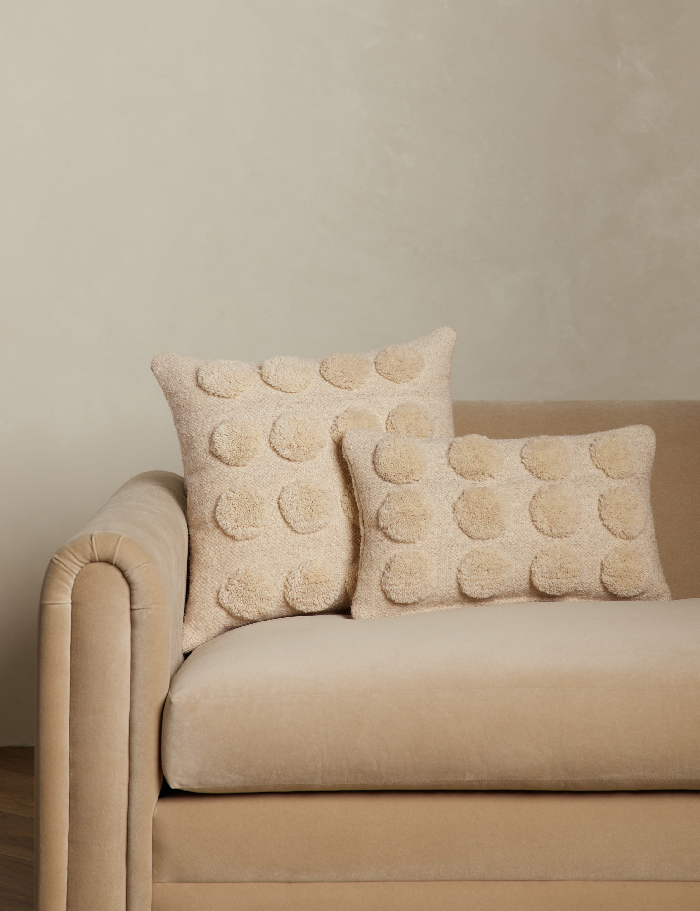 Add some texture to the mix with the Kohta throw pillow. Pom-like tufts create visual intrigue with a soft woolen touch, perfect for finishing a cozy curation with an artful edge. This accent pillow is from our exclusive Sarah Sherman Samuel collaboration and features all the trademarks of her warm, edited style.