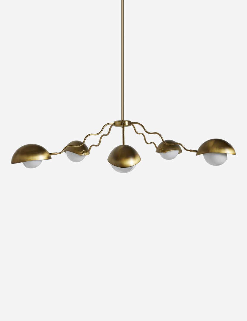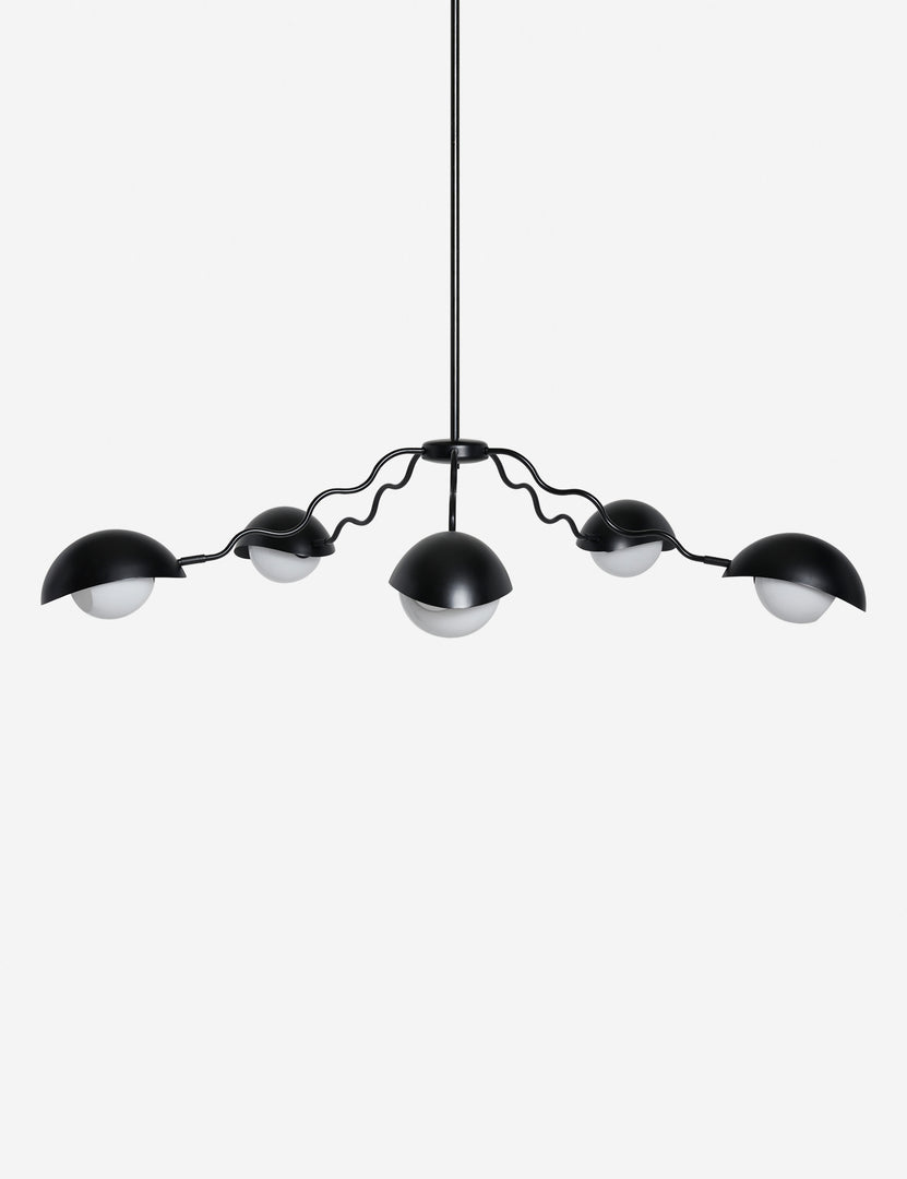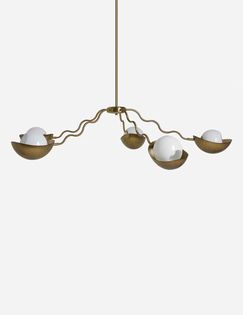 Artful whimsy meets chic appeal in the Kukka chandelier. The wavy arms hold opal glass orbs with scoop shades—striking a signature look poised for modern decor. This large chandelier is from our exclusive Sarah Sherman Samuel collaboration and features all the trademarks of her warm, edited style.