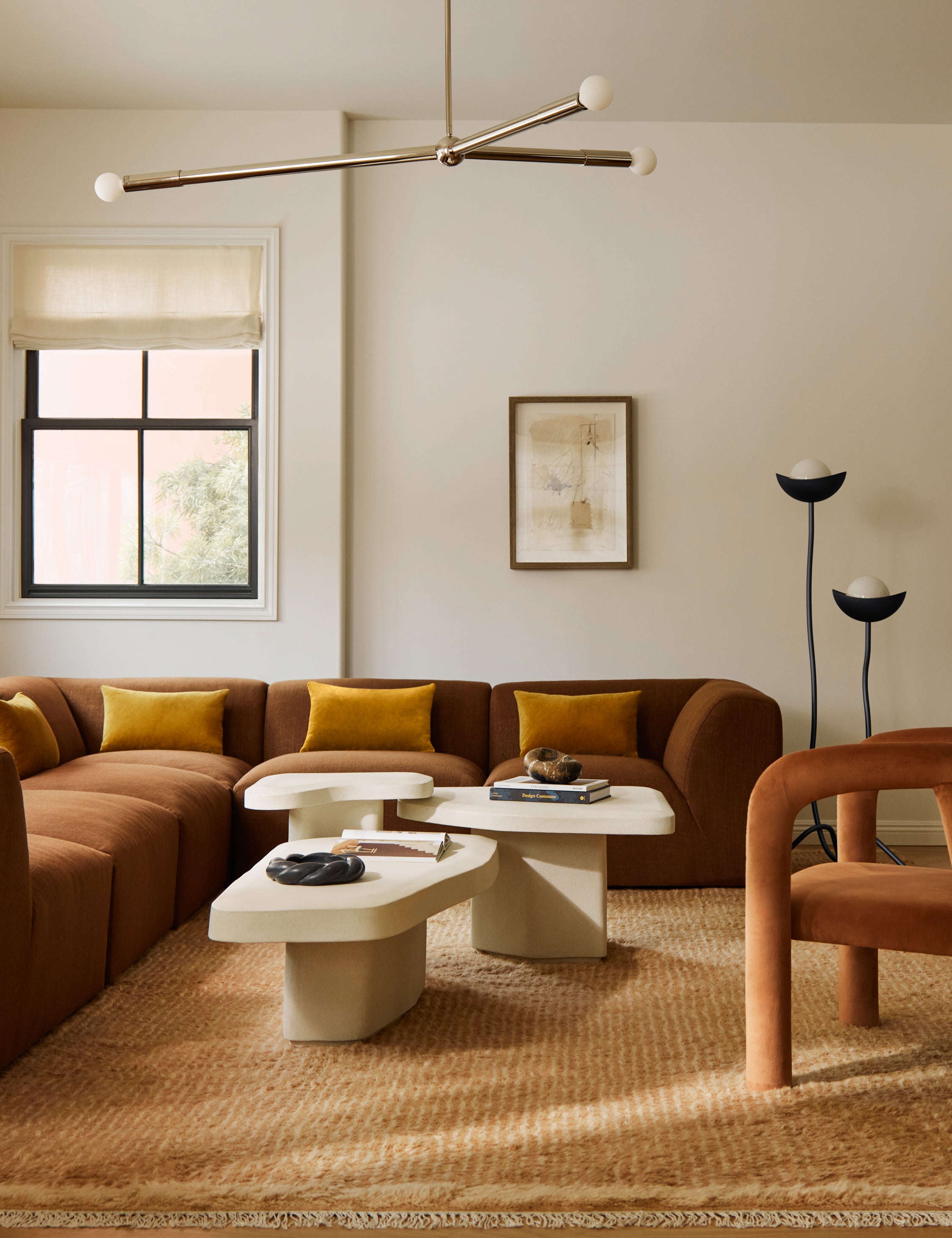 Arftul whimsy meets chic appeal in the Kukka floor lamp. The wavy, U-shape base holds opal glass orbs with scoop shades—striking a signature look poised for modern decor. This lamp is from our exclusive Sarah Sherman Samuel collaboration and features all the trademarks of her warm, edited style.