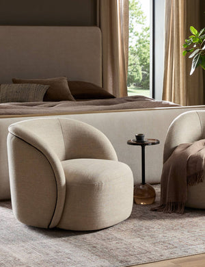 The Lada swivel chair brings soft impact to any space. With its low profile, clean curves, and tailored upholstery, this swivel chair offers effortless function with a 360-degree spin. Style it in a reading nook or pair it with a sofa for a chic, conversational set.
