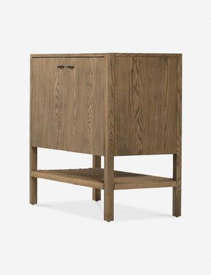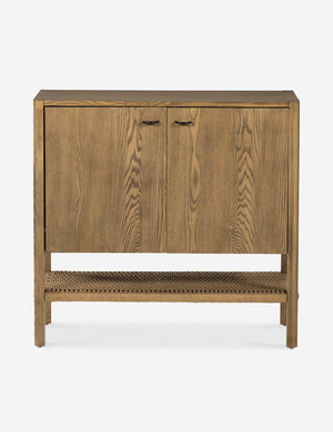 A clean-cut, ash wood design brings Danish-inspired warmth to this Laird cabinet. Iron arch pulls complete the look, while a woven cord shelf offers the perfect textural touch. This cabinet provides easy storage and natural grain appeal with a compact footprint for small-space style.