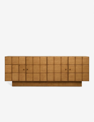The Lee sideboard offers visual intrigue and natural grain warmth with its blockwork detailing and fluted plinth base. The name is a nod to Sarah's dad, who fabricated the custom doors on which the cabinet doors are based. This sideboard cabinet is from our exclusive Sarah Sherman Samuel collaboration and features all the trademarks of her warm, edited style.