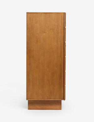 The Lee dresser offers visual intrigue and natural grain warmth with its blockwork detailing and fluted plinth base. The name is a nod to Sarah's dad, who fabricated the custom doors on which the drawer front is based. The tall design features a compact footprint with cabinet doors opening to spacious storage, including three interior drawers. This dresser is from our exclusive Sarah Sherman Samuel collaboration and features all the trademarks of her warm, edited style.The Lee dresser offers visual intrigue and natural grain warmth with its blockwork detailing and fluted plinth base. The name is a nod to Sarah's dad, who fabricated the custom doors on which the drawer front is based. The tall design features a compact footprint with cabinet doors opening to spacious storage, including three interior drawers. This dresser is from our exclusive Sarah Sherman Samuel collaboration and features all the trademarks of her warm, edited style.