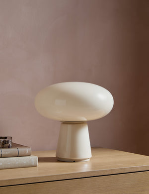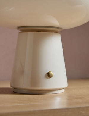 A softened dome and smooth contours give our Leesa cordless table lamp an inviting glow. This portable lamp layers warmth and subtle impact throughout the home, perfect for nightstands, bookshelves, or intimate dining moments.
