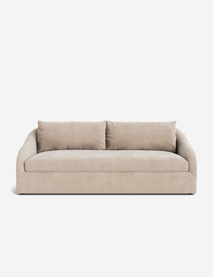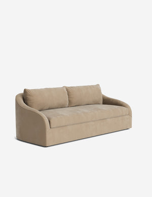 Soft curves and tailored lines give the Liba sofa a quiet elegance. Hand-upholstered for a refined finish, it offers balanced comfort in a sculpted silhouette, sized to anchor a room with a seamless presence. This modern sofa is perfect for entertaining, offering ample seating with a polished look that elevates any gathering.