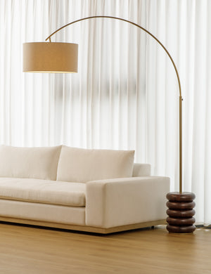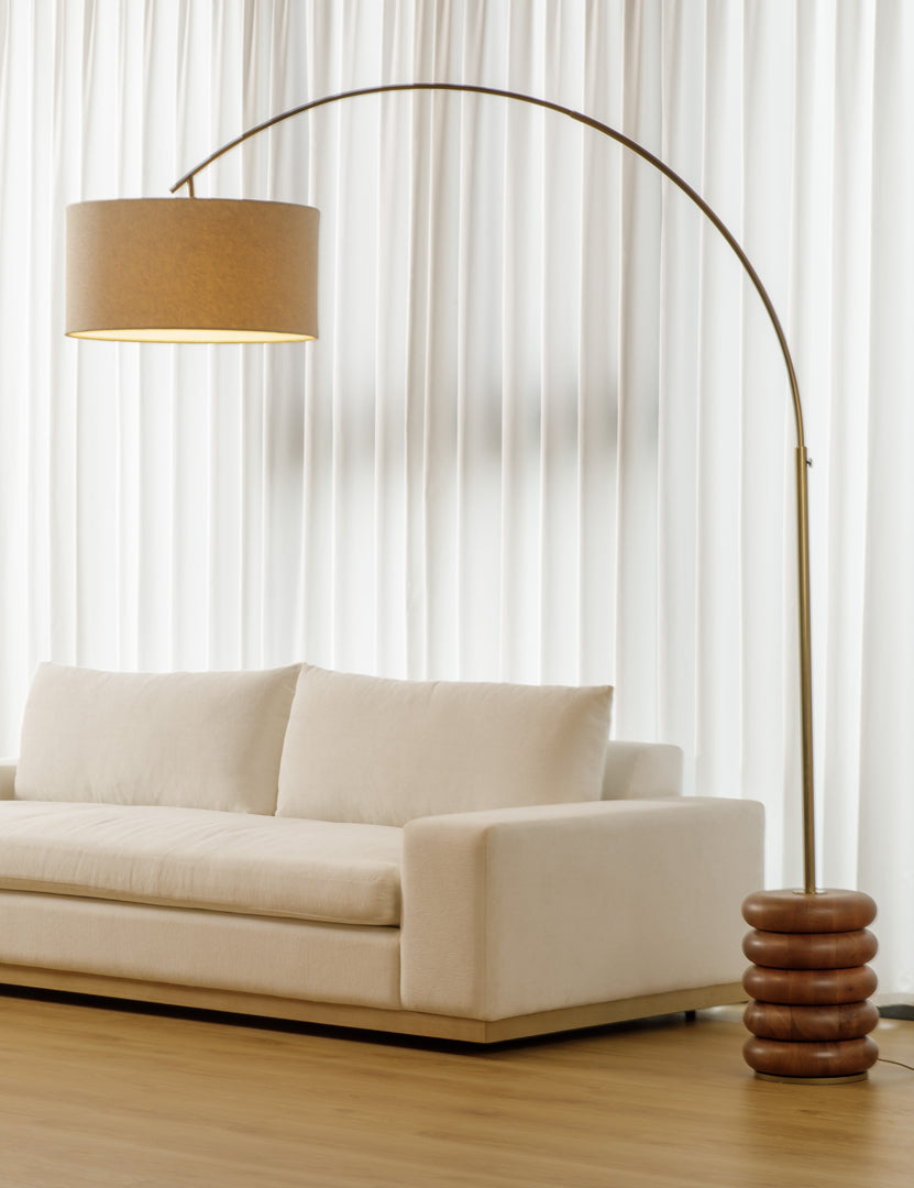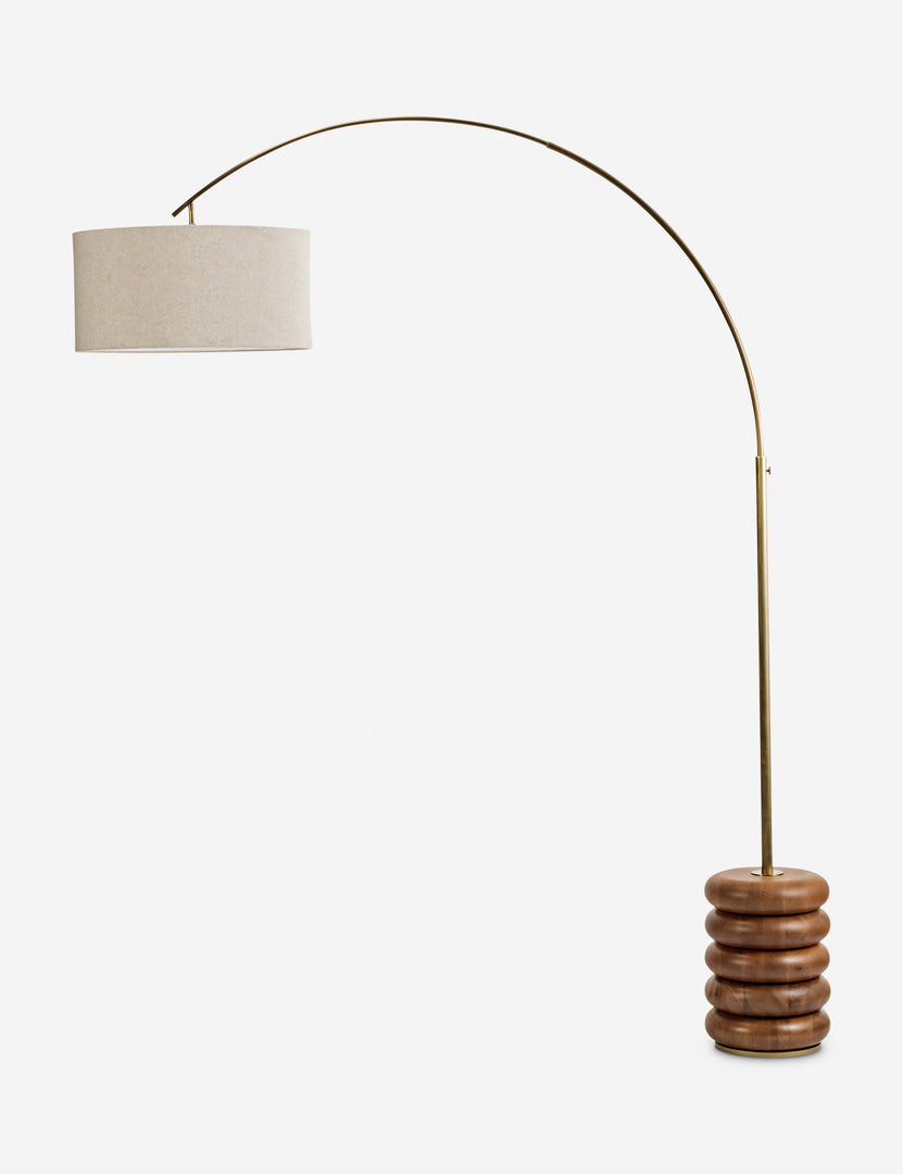 Fine design calls for elevated lighting. The Linus floor lamp features a sculptural wood base topped with a natural linen shade for a modern take on organic textures. The arc design makes this the perfect statement lamp beside a sofa or chair.