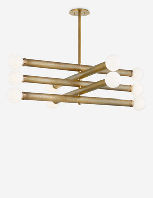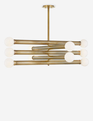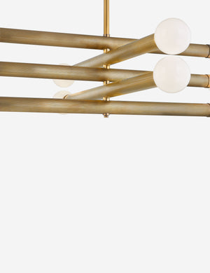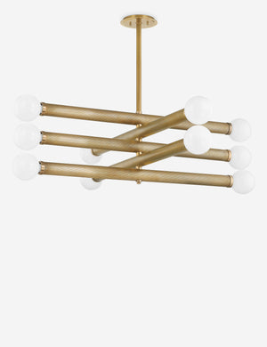 Borrowing from old Hollywood glamour blended and adding industrial flair, this modern chandelier creates a dynamic finishing touch over your foyer or dining room. Its minimalist silhouette in a bold brass finish fashions this chandelier with statement appeal.