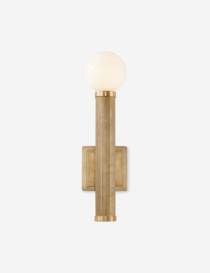 Blending old Hollywood glamour with industrial flair, this modern sconce creates a dynamic finishing touch in your foyer or living room. Its minimalist silhouette in a bold brass finish creates a compellingly stylish sconce light.