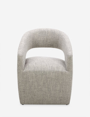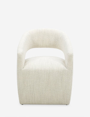 Set a place for comfort at your table with the Lorenzo dining chair. The sculptural form is fully upholstered for a tailored silhouette with a modern feel. Rolling casters add seamless movement, styling a versatile dining seat for every occasion.
