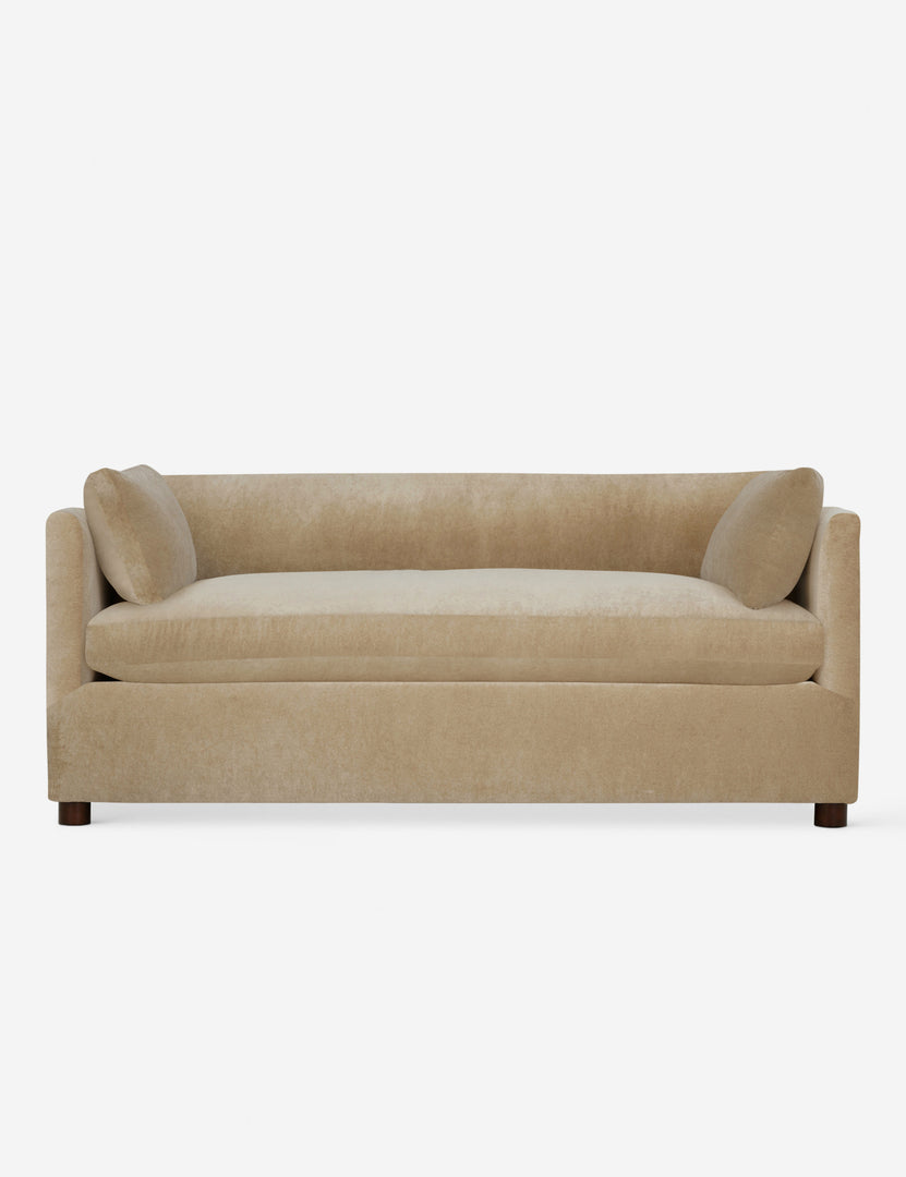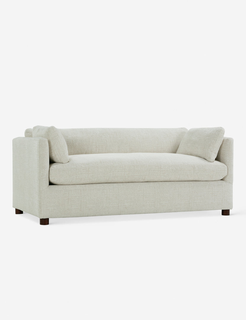 Crisp upholstery accentuates the clean lines of this sofa. Available in a beautiful selection of earth-toned fabrics, the deep seat and shelter-style design offer a refined look for a grounded space tailored to you. Style this couch with a luxe throw and a sculptural side table to elevate its soft appeal.