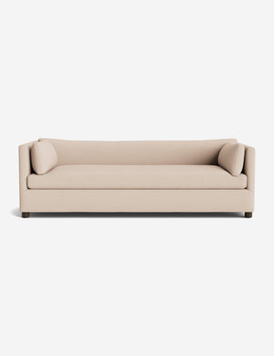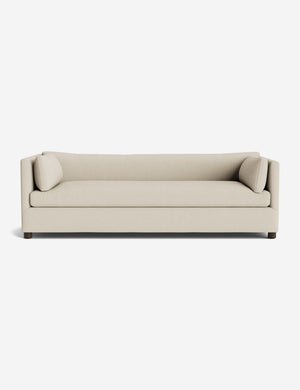 Crisp upholstery accentuates the clean lines of this sofa. Available in a beautiful selection of earth-toned fabrics—the deep seat and shelter-style design offer a refined look for a grounded space tailored to you. Style this couch with a luxe throw and a sculptural side table to elevate its soft appeal.
