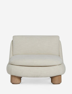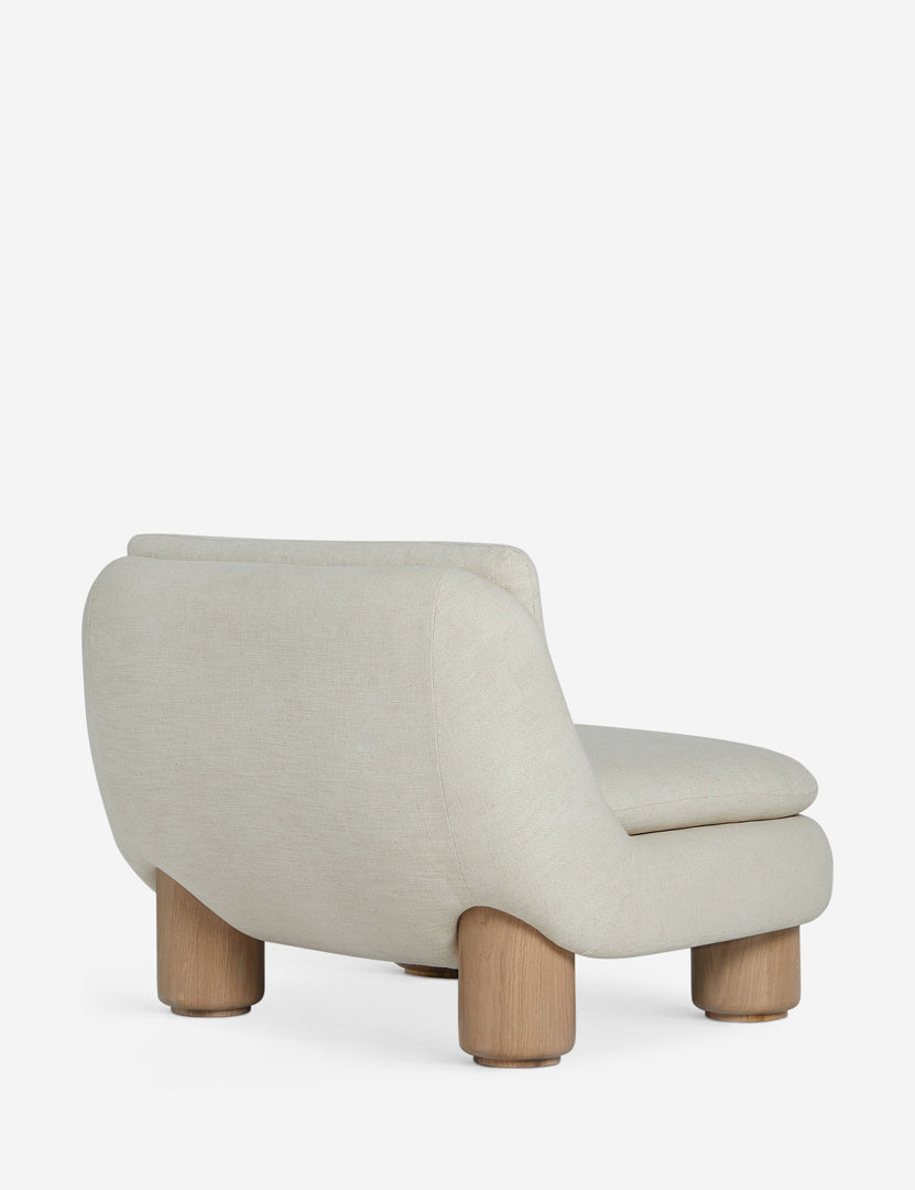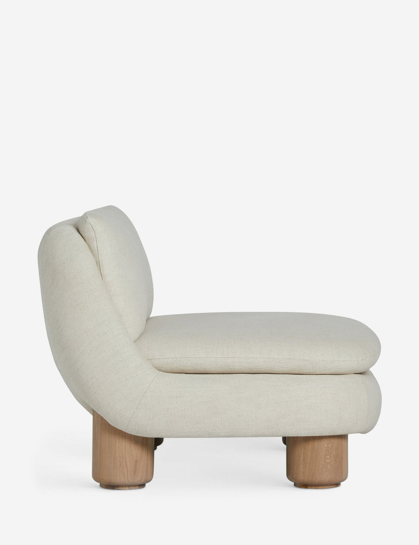 Our Lozano accent chair offers a low-profile design with fresh appeal. This armless lounge chair pairs an organic feel with tailored upholstery, a plush cushioned seat, and rounded wood legs for a grounding touch.