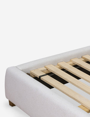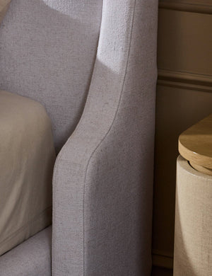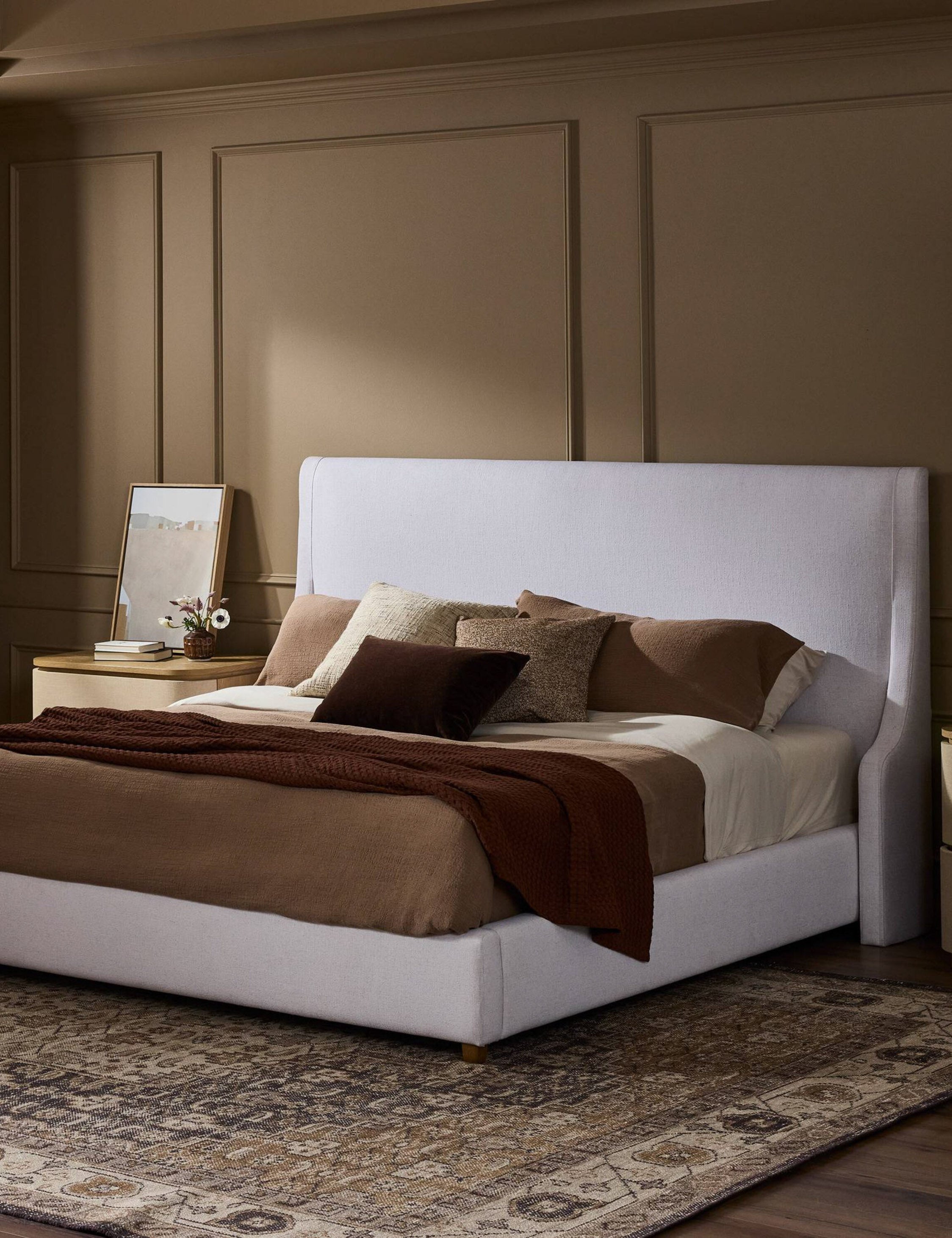 Designed with a low profile and winged headboard, the Lucine bed brings a tailored look to comfort. Fully upholstered in performance fabric, the cushioned frame is made for everyday elegance. This bed frame layers beautifully into timeless and transitional bedrooms.