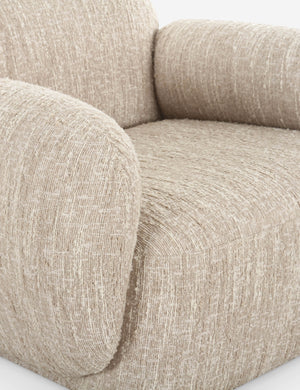 This plush lounge chair makes a bold impression. With its softly exaggerated curves and low-slung form, it brings both comfort and sculptural appeal. The chair's profile strikes a balance between playful and poised, perfect for anchoring a modern space.