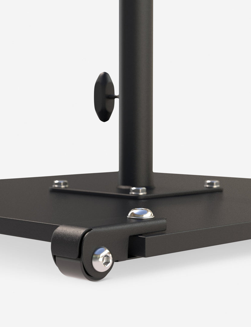 A solid foundation for seamless shade. This low-profile umbrella base pairs crisp lines with built-in casters for easy movement, while rubber feet and substantial weight ensure a steady hold. Umbrellas are sold separately—shop our selection to find the perfect match.