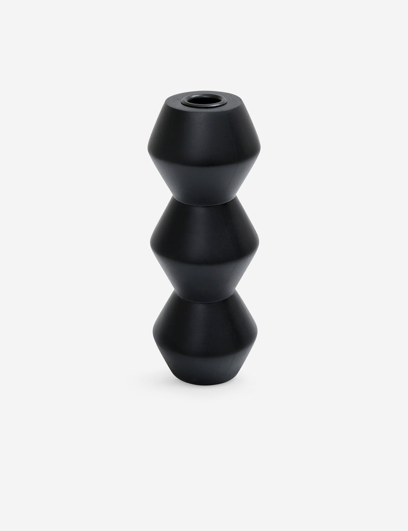 Beautiful wood meets geometric design in this modern candle holder. Its angularity offers an intriguing contrast in tabletop displays that creates a warm ambiance with a taper candle.