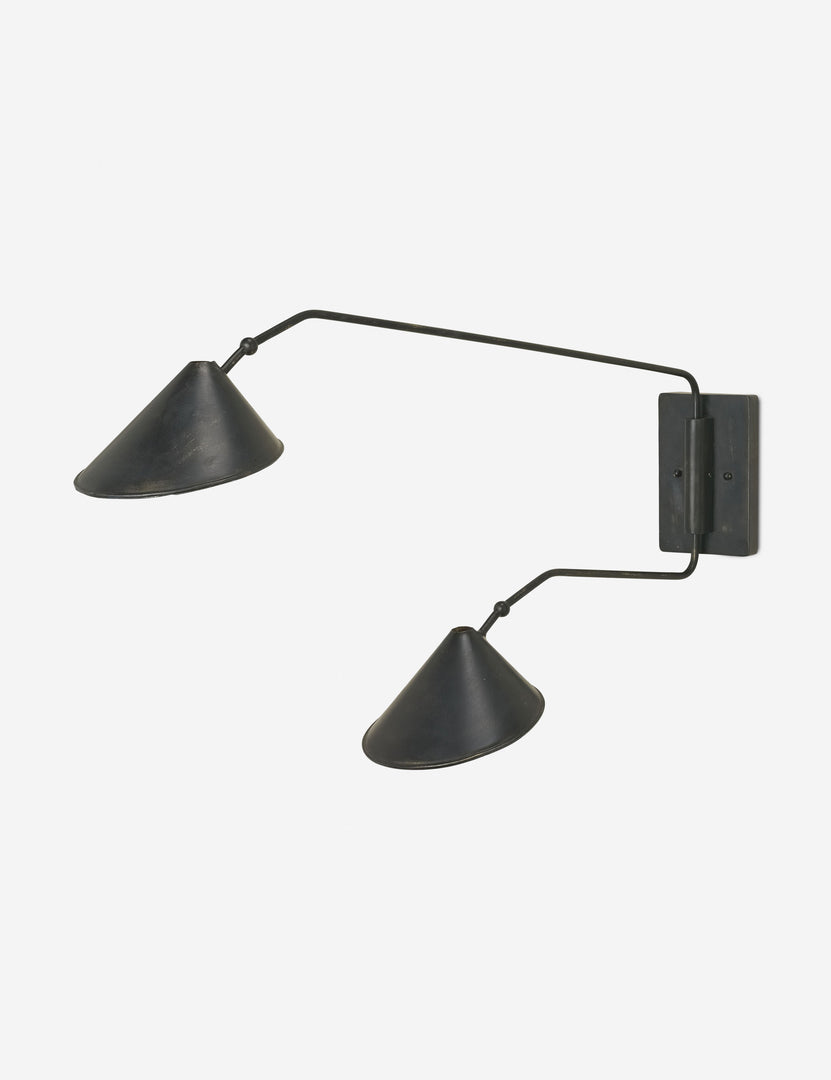 Blending industrial style with a vintage touch, the Marca sconce is a stunning choice for transitional edits. The angular design offers a striking silhouette with a gold leaf lining for warm illumination. This adjustable wall sconce is perfect for directing accent or task light in the room.