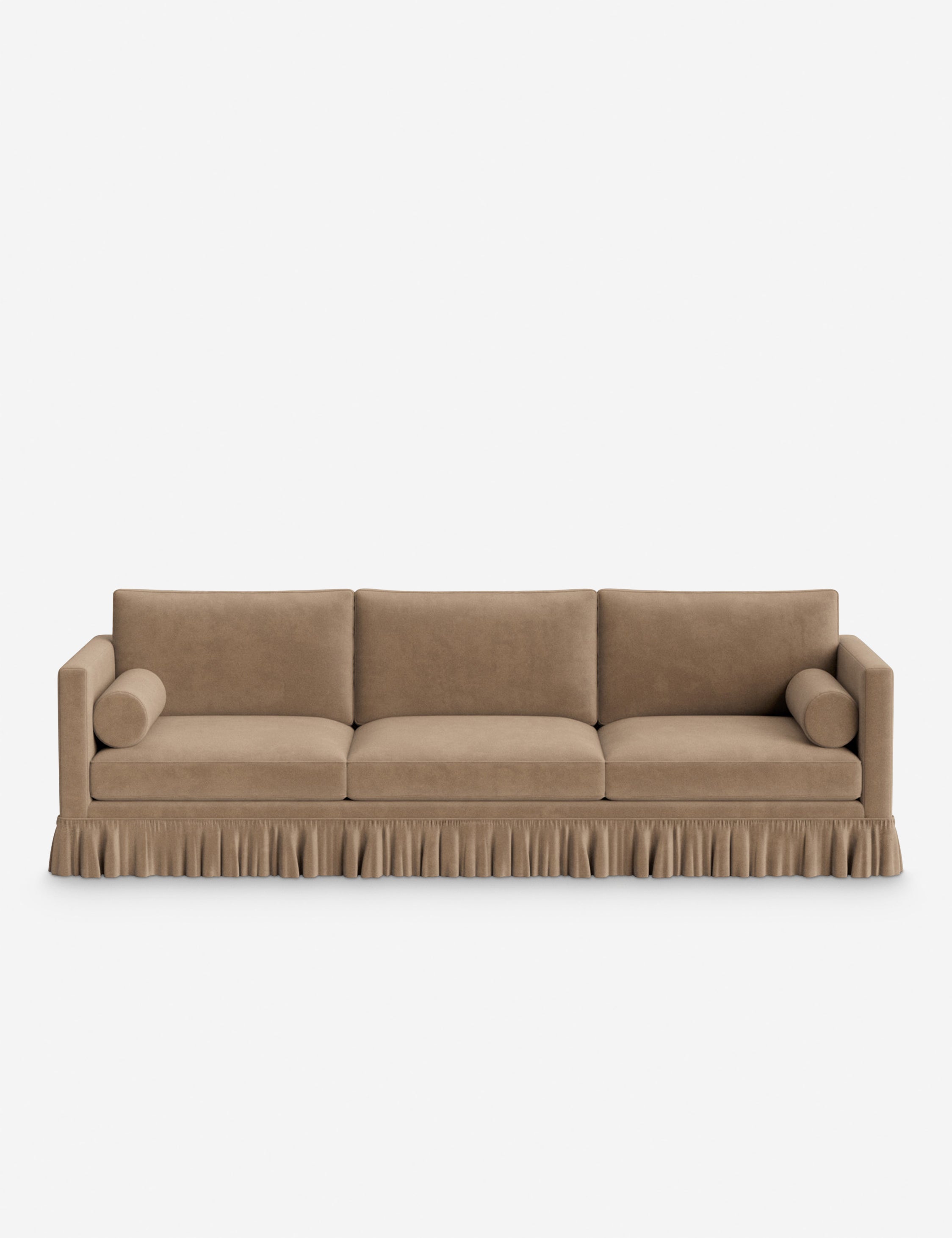 Heidi Caillier infuses this exclusive collection with all the warmth, pattern, and nostalgic details that define her celebrated interiors. Clean lines meet a full fringe skirt for a refined contrast that grounds this sofa with effortless charm. Choose bespoke upholstery to make this piece feel perfectly at home in your space.