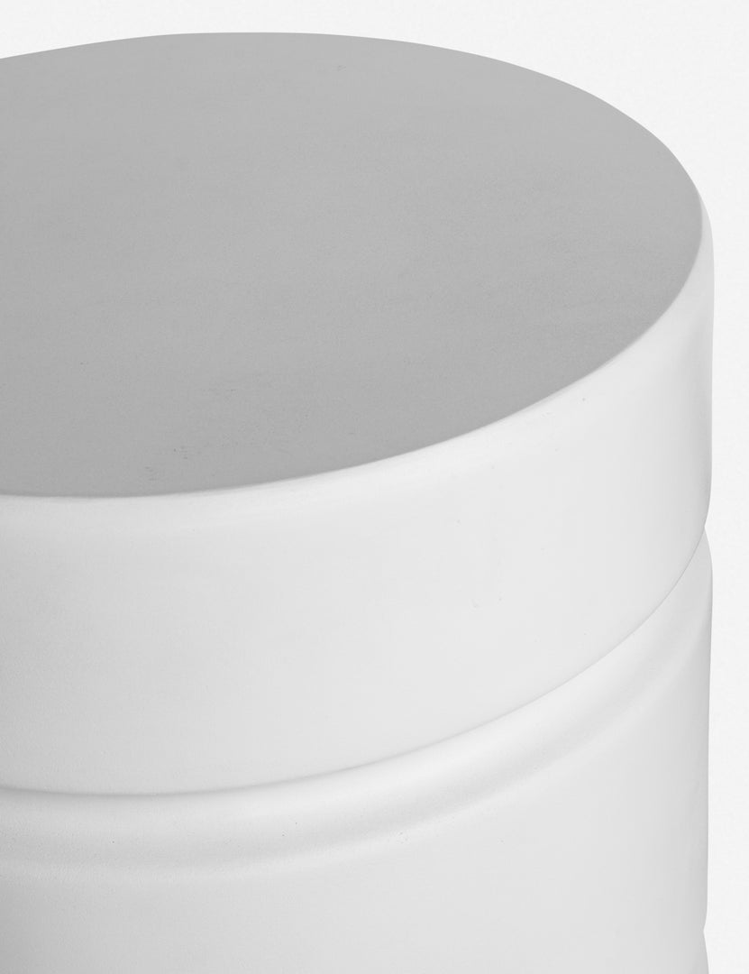 Add a polished touch to your at-home decor with this clean-lined concrete side table. The sculpted shape features grooved detailing and a glossy finish so that you can style this end table throughout your home, from your living room to the patio. Pair two together to create a collected feel or use one as an striking accent piece.