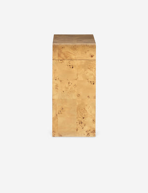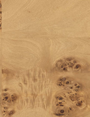 Burl wood is a natural material, valued for the distinct knot patterns and organic variations that make each piece unique.
