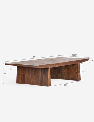 Crafted from reclaimed wood, this coffee table makes a grounded statement with its bold proportions and striking silhouette. The angular legs and chunky top give it a sculptural quality, while the natural grain and rustic details speak to the beauty of repurposed materials. This solid wood coffee table brings both weight and warmth to any living space.