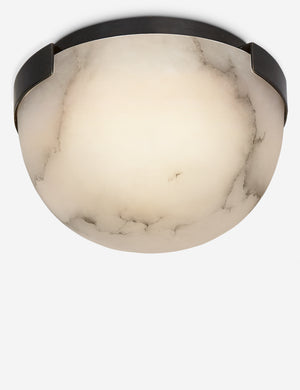 Kelly Wearstler possesses an intuitive eye for finding harmony through contrast, creating richly layered spaces and thoroughly refined elements for the home. The Melange flush mount light contrasts natural alabaster with polished metal accents for a luxe material mix. This petite ceiling light's domed shade diffuses a warm, ambient glow overhead.