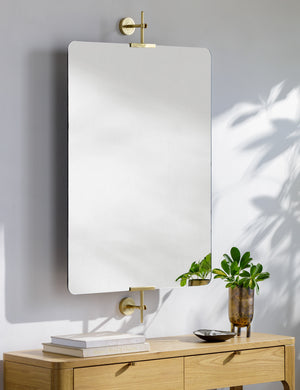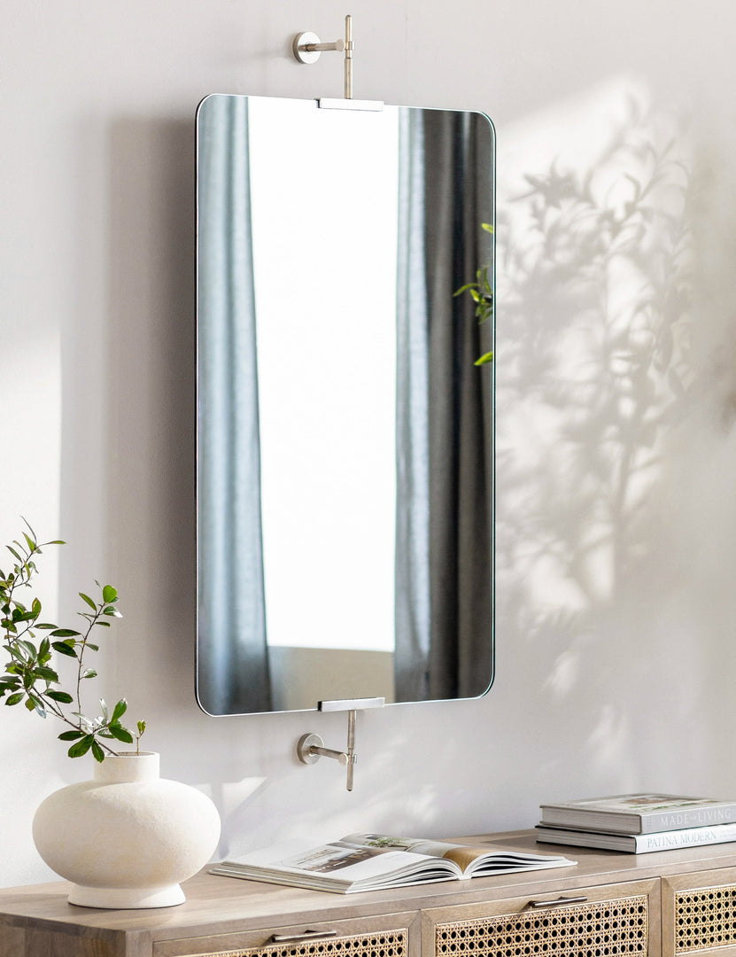 The Melle mirror styles vintage inspiration with a modern edge in its sleek yet striking design. Metal brackets offer an industrial detail while rounded corners soften the clean rectangular glass for a clean, minimalist feel. Place this accent mirror in a powder room, entryway, or living space for a timeless touch of polish.
