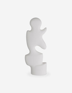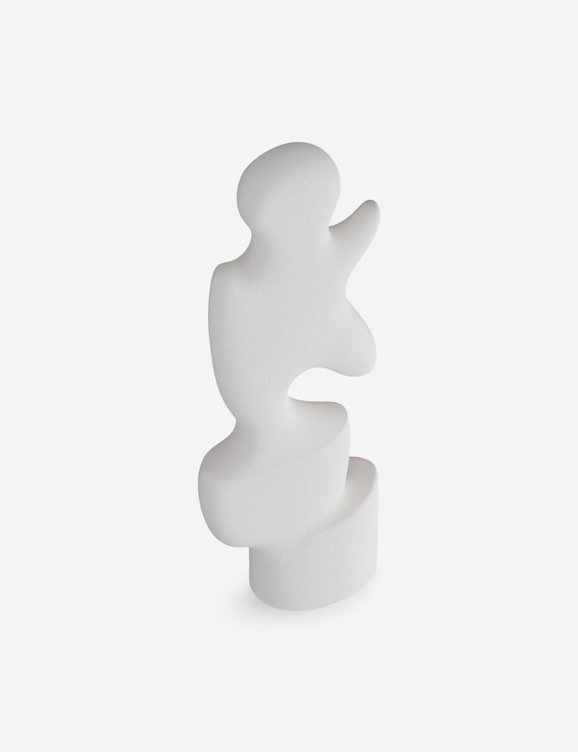 Abstract in its lines, this modern sculpture evokes the human form while offering a fresh, engaging detail to your decor. A white plaster finish with a black base offsets the tone for striking impact.