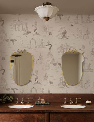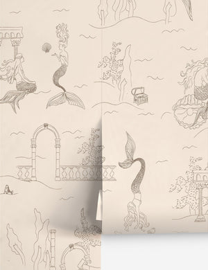 A playful take on classic toile, this designer wallpaper features hand-drawn mermaids and seaside ruins in a loose, whimsical layout. The linework keeps the look light, making it perfect for a powder room or nursery. This wallpaper is from our exclusive Sarah Sherman Samuel collaboration and features all the trademarks of her warm, edited style.
