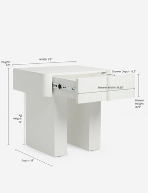 The Merrit nightstand features a deco-inspired woodwork construction that pairs crisp, curving lines with ridged detailing and a carved drawer pull. The drawer provides generous storage for a practical yet stylish bedside table. This piece is from our exclusive Sarah Sherman Samuel collaboration and features all the trademarks of her warm, edited style.