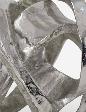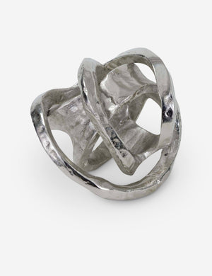 This piece folds raw industrial texture into a sculptural, tabletop form. The entwined silhouette is great for adding dimension and polish to a coffee table, console, or bookshelf curation.