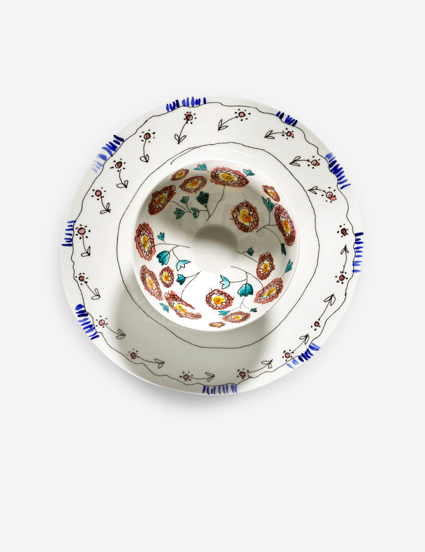 Marni’s signature aesthetic finds new expression in this collaboration with Serax, bringing their bold, colorful, and artfully irreverent style to fine bone china. The floral motifs are applied as decals and glazed to give the delicate pattern a lasting finish. With perfectly imperfect shapes and hand-finished details, these dinnerware pieces set a table that feels refined, polished, and refreshingly timeless.