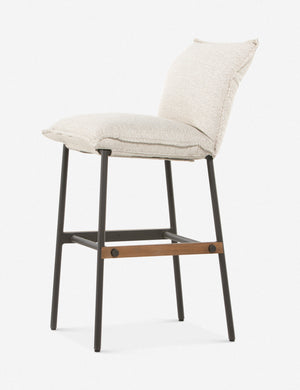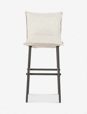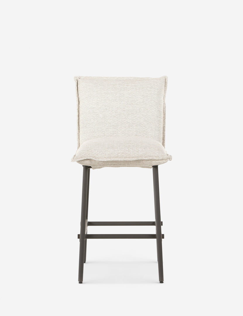 This plush bar chair sits atop a streamlined iron frame with teak accents. The performance upholstered seat and back feature flange detailing for effortless comfort with fresh style. Style this stool for versatile seating from the kitchen to an outdoor snack bar.