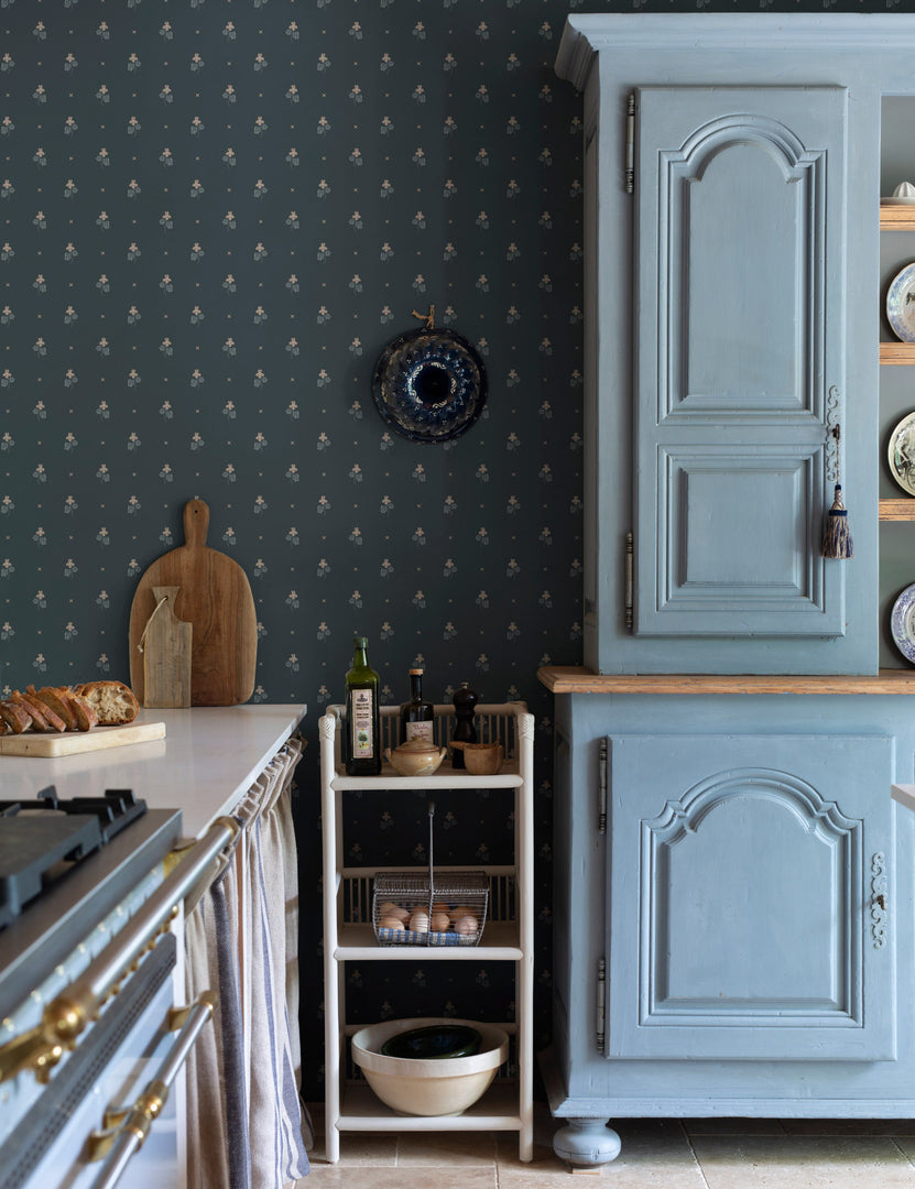 This floral wallpaper adds a delicate touch to any room. Inspired by the wild violets that peek through the designer's walled garden in early Spring and named for her grandmother, there is something personal in its quiet charm. We love this wallpaper for a space where thoughtful touches refine a timeless curation.