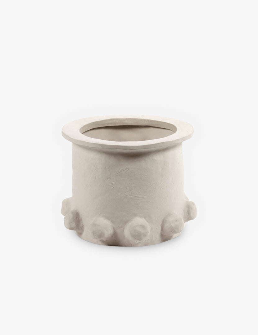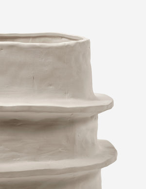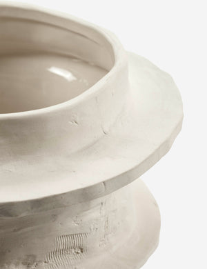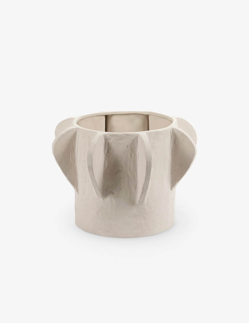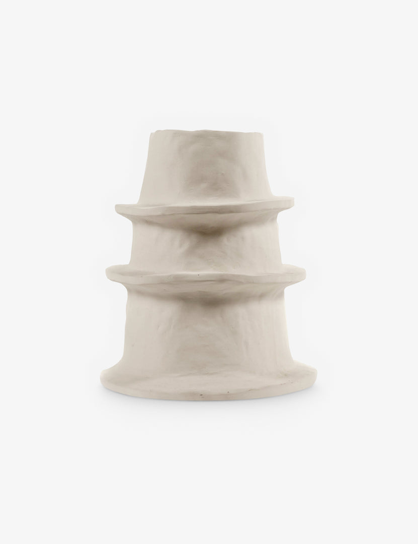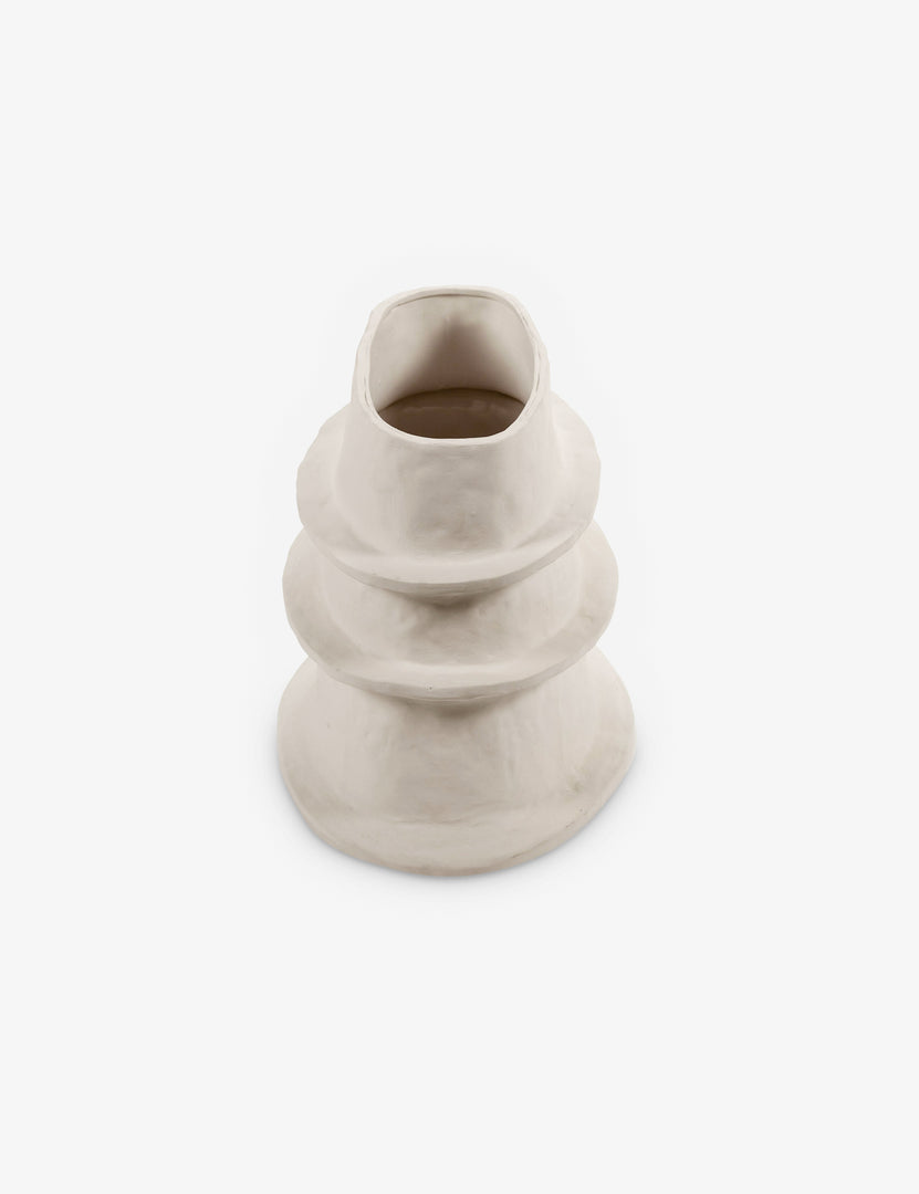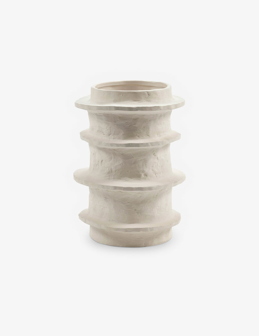 The Molly vase makes a bold impression with a graphic silhouette and earthy texture. Crafted from off-white stoneware with a matte exterior and glazed interior, this piece brings a sculptural edge to any console, shelf, or tabletop.