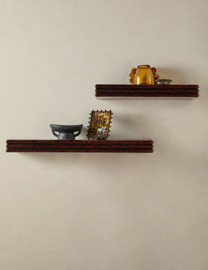 A sculpted edge gives the Monti shelf its soft, timeless character. Crafted with a richly finished surface, it brings a polished accent to any wall. Style this wall shelf with books, art objects, or candles for a curated moment that stands out.