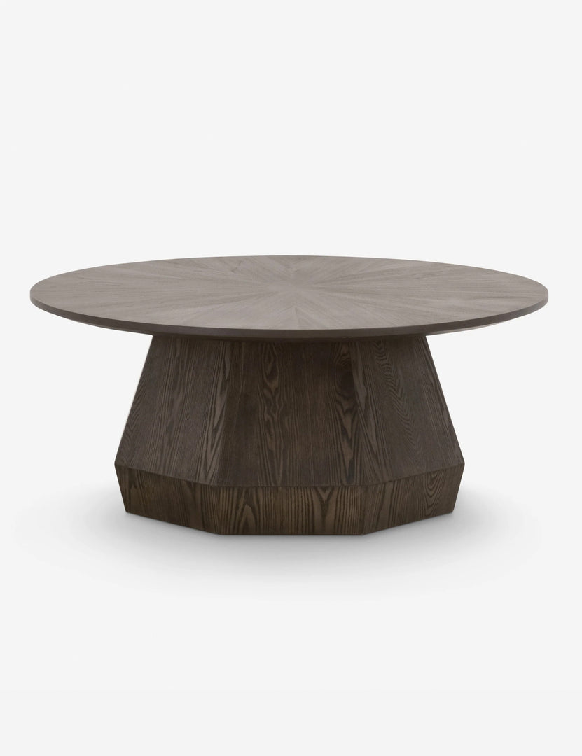Anchor the room with impact. This wood coffee table cuts a clean geometric silhouette, offering natural grain texture with a modern edge. The starburst veneer on top is a striking detail that makes this coffee table the perfect centerpiece for a dynamic space.