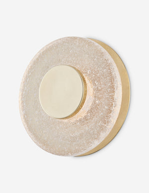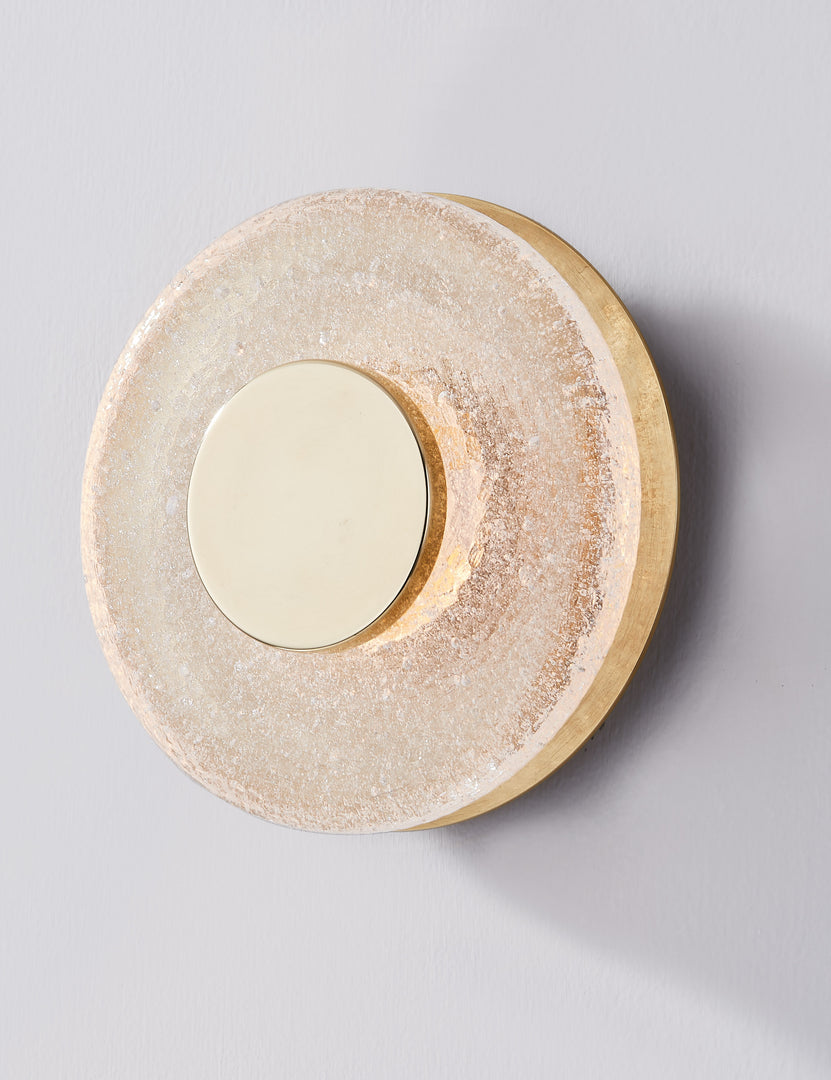 Who said simple can't be stunning? This slim sconce pairs thick circles of cast glass with metallic accents in a flawless design. When lit, the texture of this beautiful material is on full display, offering a dazzling wall sconce for transitional and modern aesthetics alike.