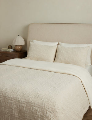 DISC Interiors emphasizes people and place in their designs, creating spaces that find balance and impact through thoughtful curation. They bring that same philosophy to this collection with pieces that invite you to live in comfort and love your surroundings. Their Muro bedding is inspired by the calmness of Zen gardens and the serene patterns raked into the stone, offering soft-texture comfort with the natural touch of cotton.