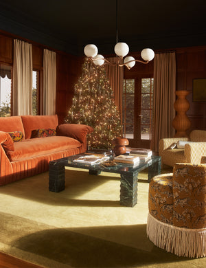 In this exclusive collection, Aimee Song brings her beloved fashion sense home with artful elements designed for living. Modern glamour meets timeless charm in the Nara chandelier. This mixed material chandelier design styles a striking silhouette with polished wood grain and fluted glass globes.