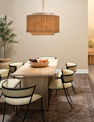Sculptural yet grounded, the Nayati chandelier reimagines classic drum lighting in tightly woven jute. The stacked form brings depth and balance, with a textured finish that warms up any room. We love this chandelier in transitional spaces or above a round dining table.