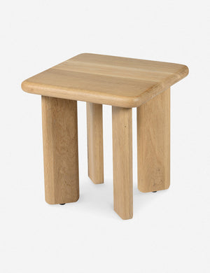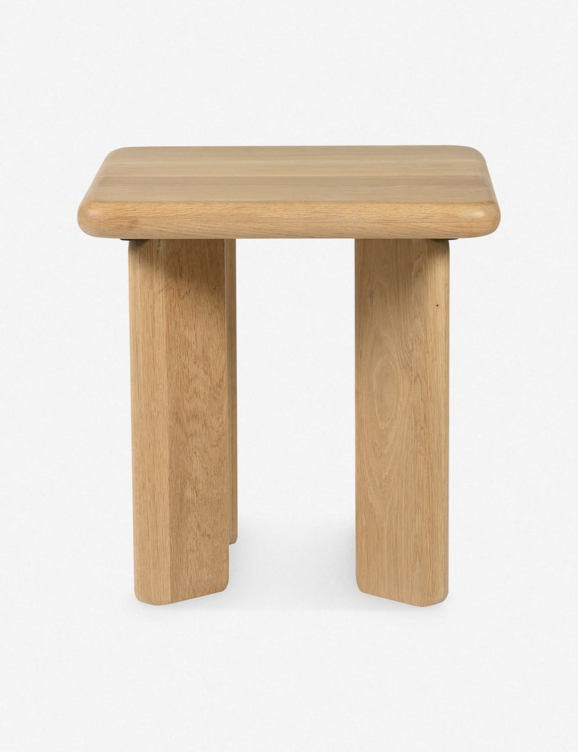 In a chunky oak design, this stool offers a versatile accent with interesting woodgrains and rounded edges. Style this stool in your living room, or you can use it as a side table to perch your book or drink on or ground a houseplant for an organic touch in a modern, airy space.