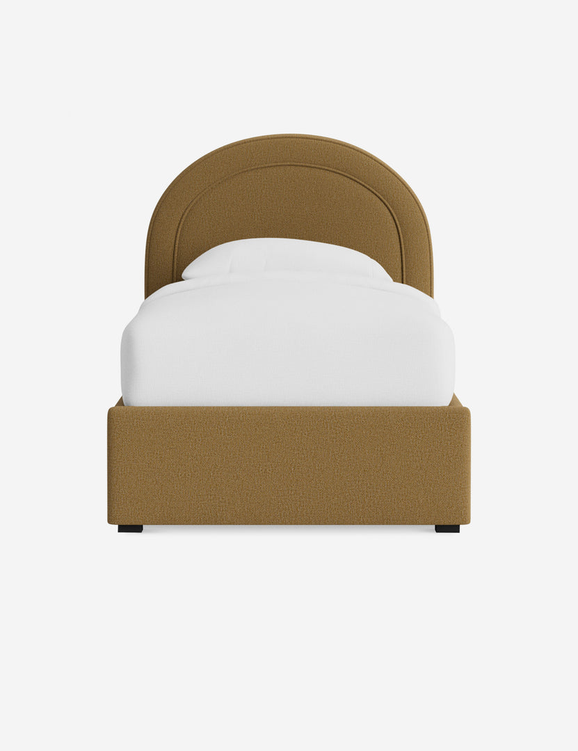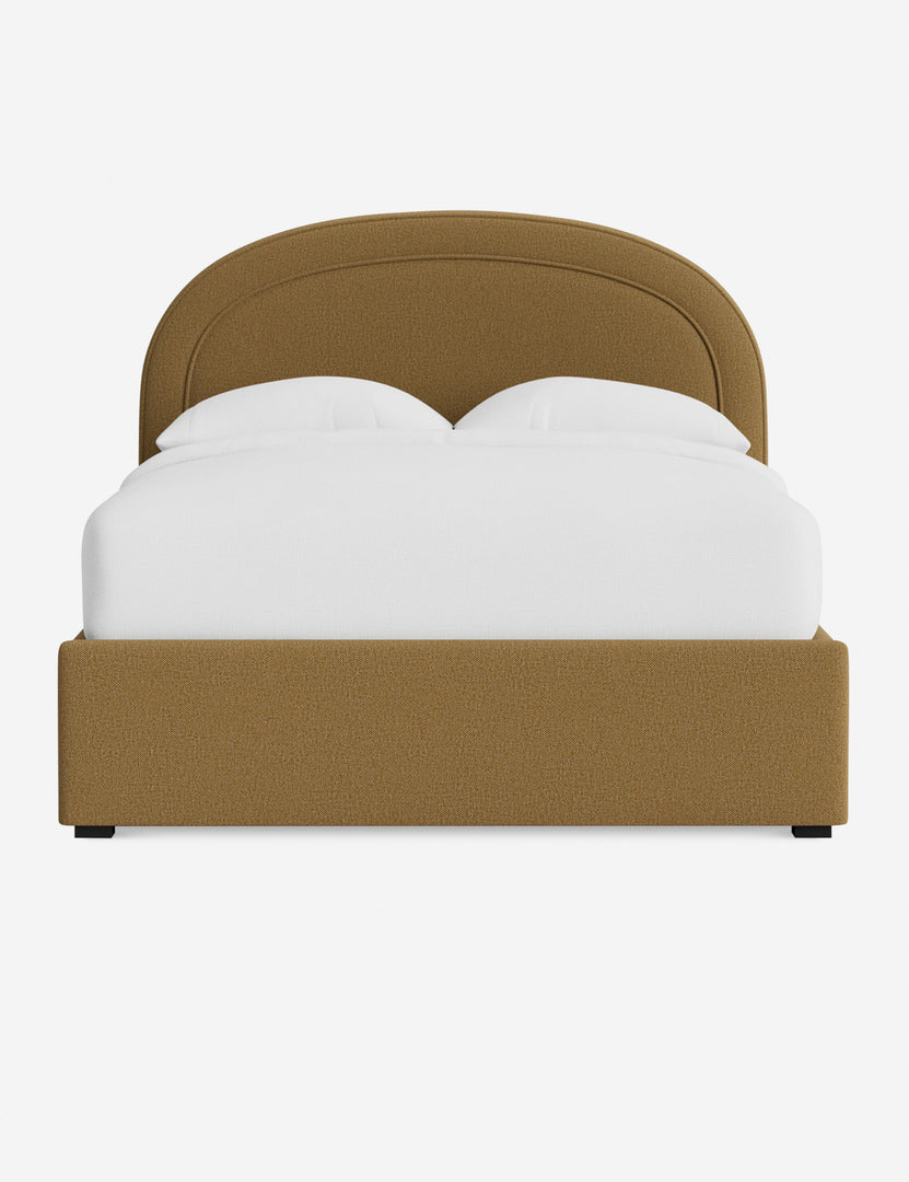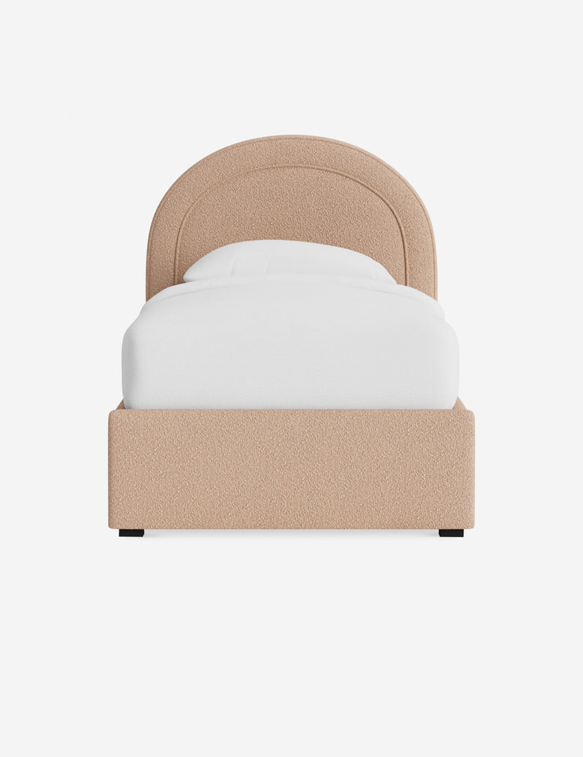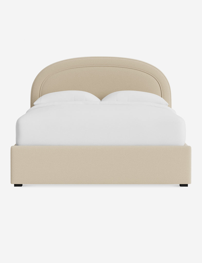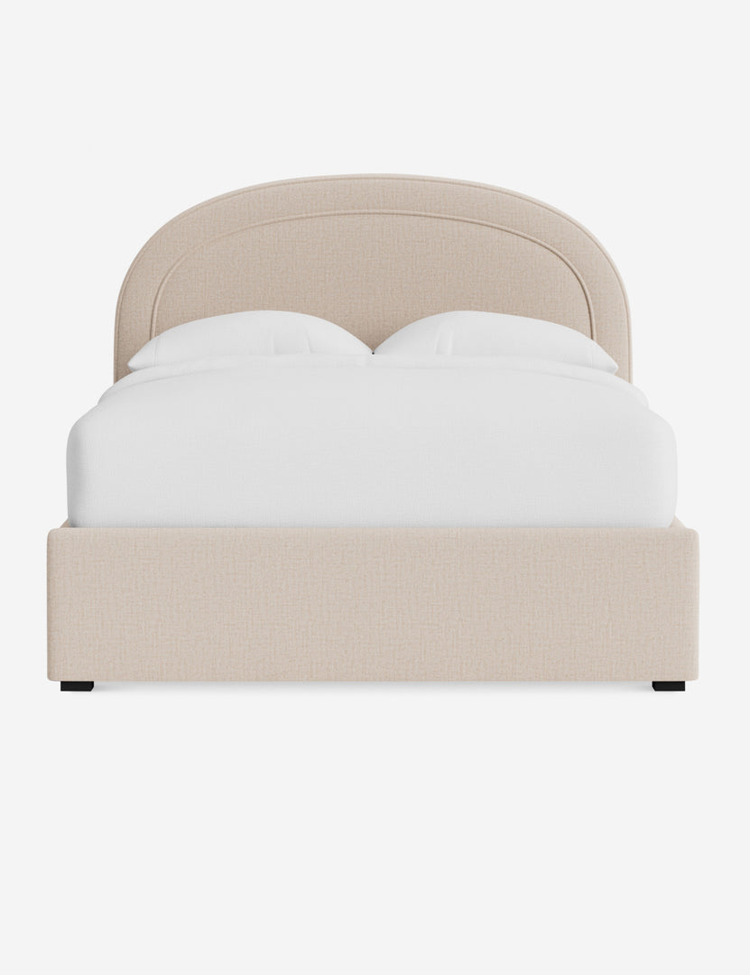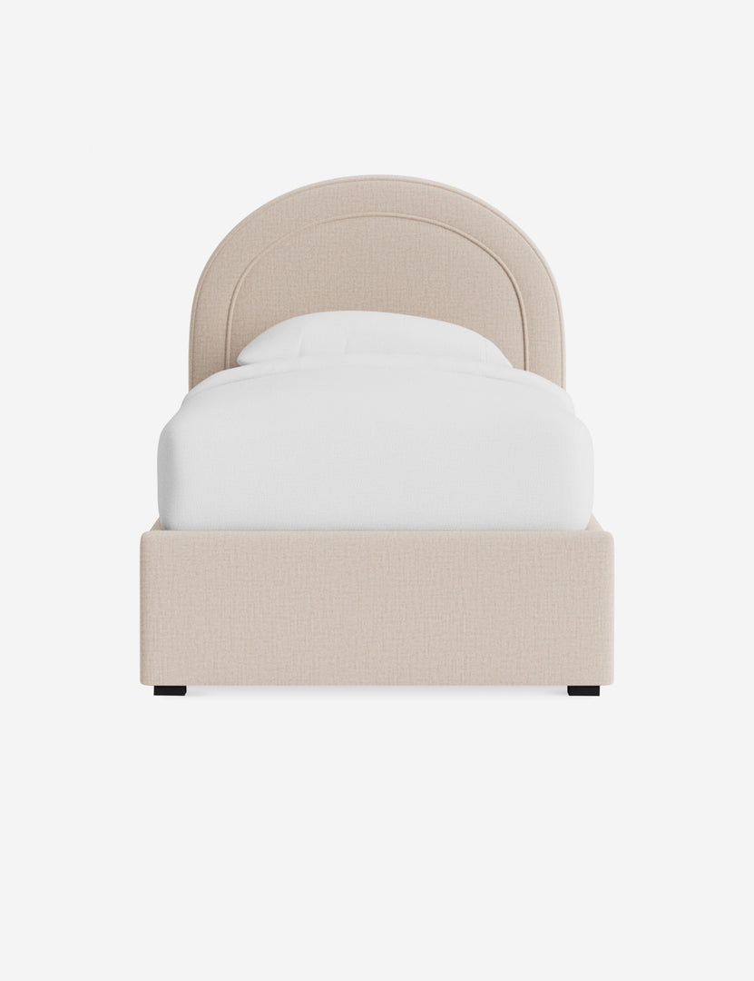 The Newbery bed offers a transitional look that's set for timeless comfort. Its arched headboard styles a soft, stately silhouette highlighted by a welted border. With bespoke upholstery covering the bed frame and headboard, you can tailor the perfect centerpiece for your curation.
