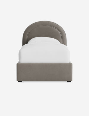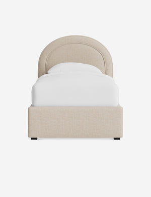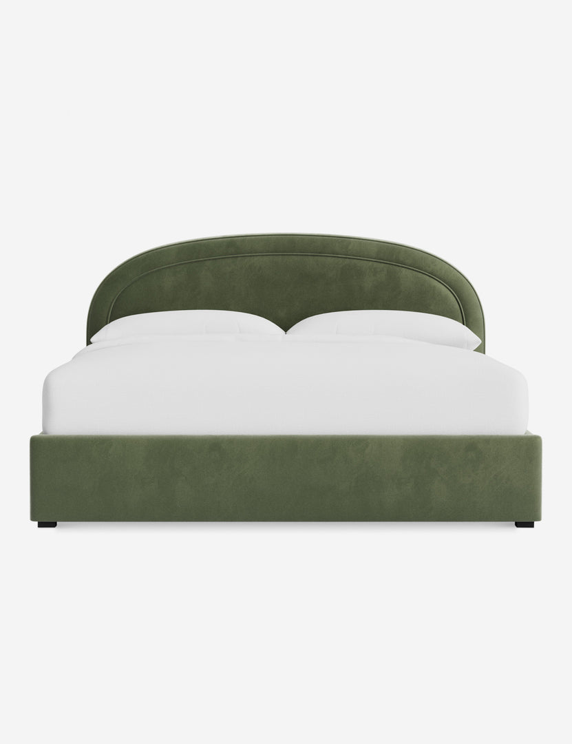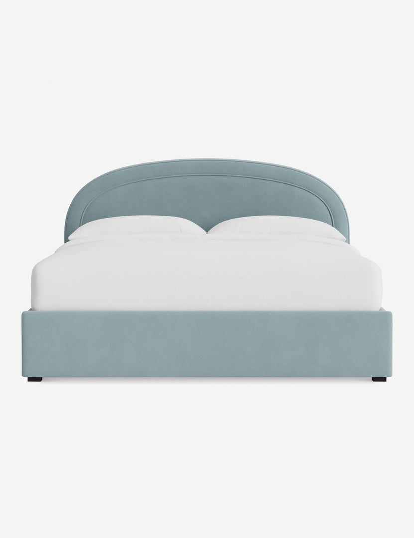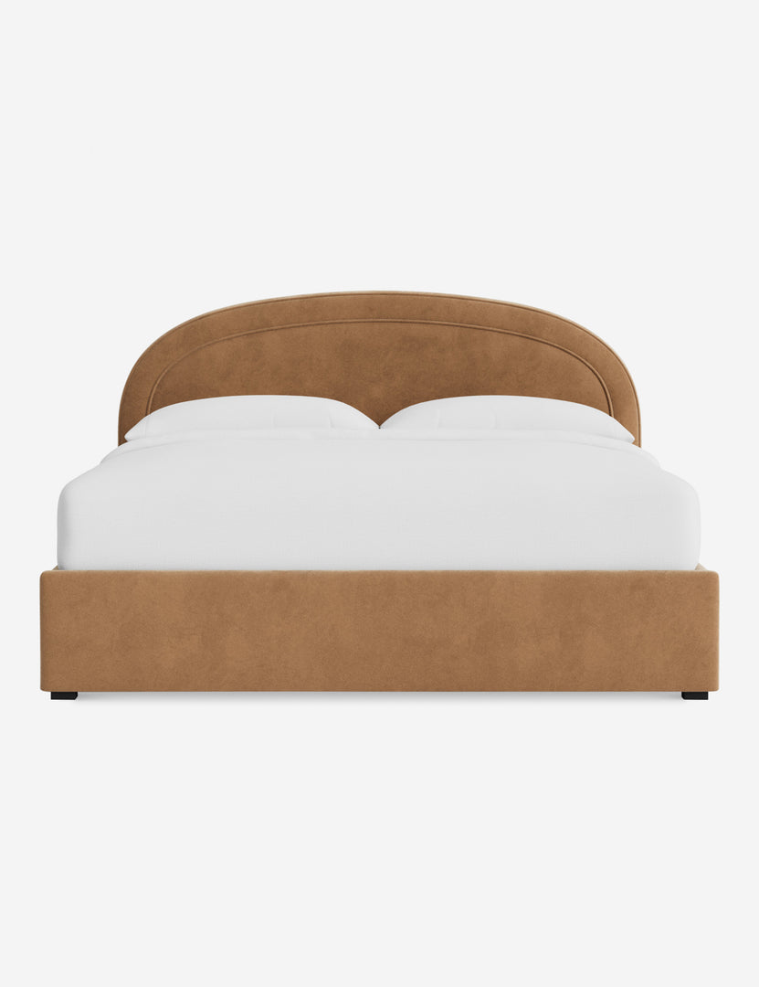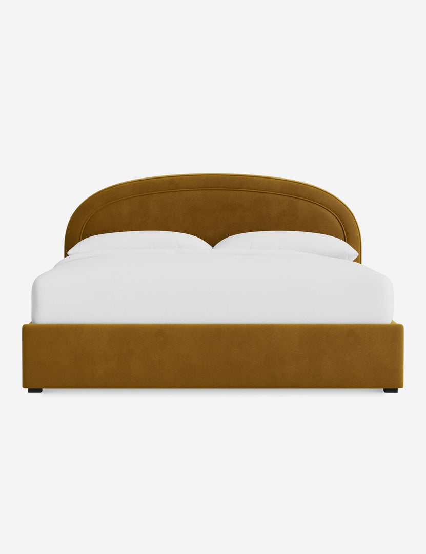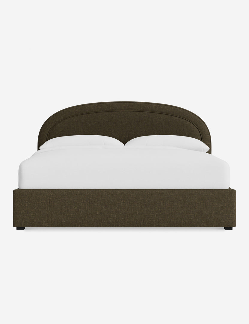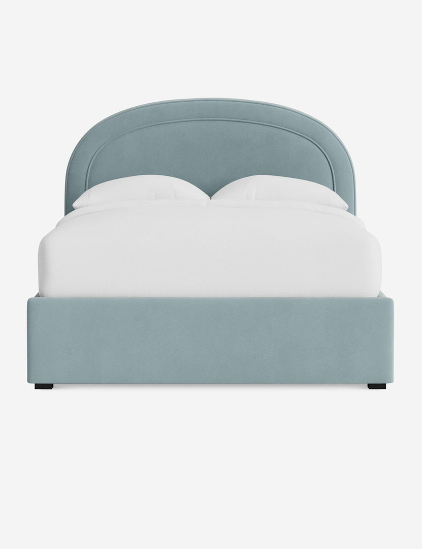 The Newbery bed offers a transitional look that's set for timeless comfort. Its arched headboard styles a soft, stately silhouette highlighted by a welted border. With bespoke upholstery covering the bed frame and headboard, you can tailor the perfect centerpiece for your curation.