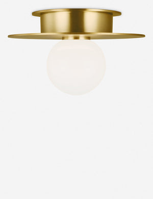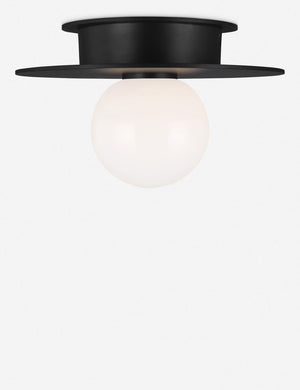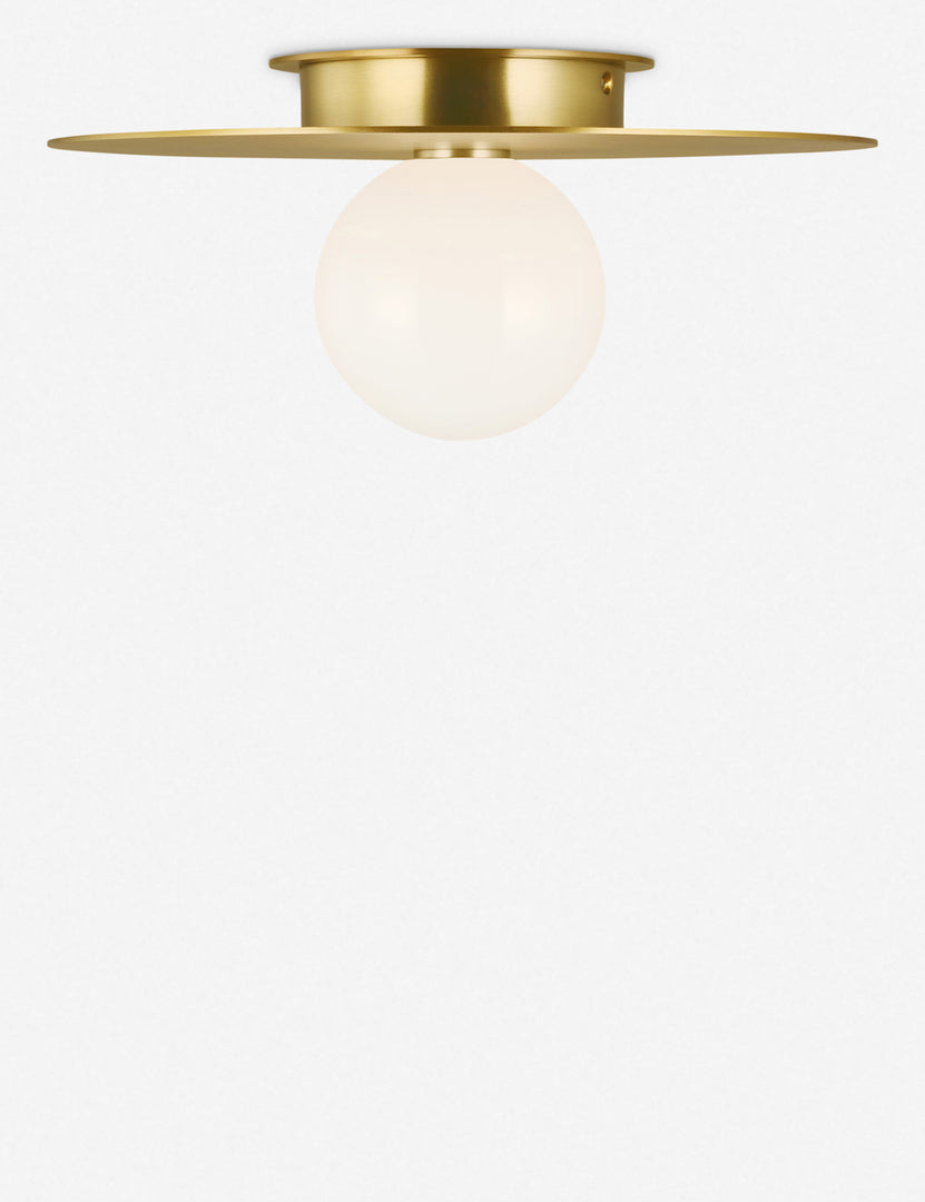 Kelly Wearstler possesses an intuitive eye for finding harmony through contrast, creating richly layered spaces and thoroughly refined elements for the home. The renowned designer brings her evocative style to lighting with the Nodes flush mount light. This overhead fixture's curvilinear form is minimal yet bold with its milk glass globe and removable disk canopy—illumination elevated.