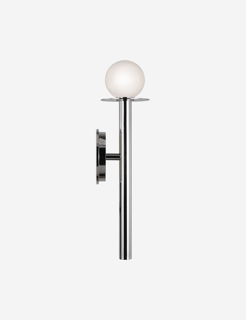 Kelly Wearstler possesses an intuitive eye for finding harmony through contrast, creating richly layered spaces and thoroughly refined elements for the home. The renowned designer brings her evocative style to lighting with the Nodes sconce. This wall sconce offers a modern take on torchiere styles, perfect as a standout feature or in multiples.