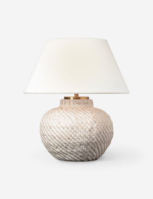 The Nosra table lamp pairs a sculptural base with a tailored linen shade in a well-balanced silhouette. Compact yet impactful, it’s a versatile accent for a desk, bedside, or layered lighting plan. This lamp brings a touch of quiet sophistication to any setting.