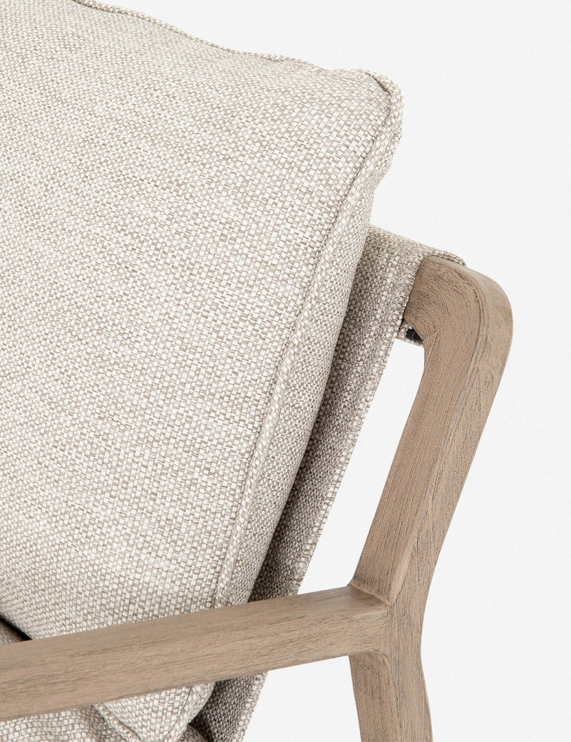 Sit back and relax with this chic little chair! Designed for indoor or outdoor styling, the teak wood frame is as durable as it is beautiful, complimented by plush fabric cushions and a low-sling angle you'll love sinking into.