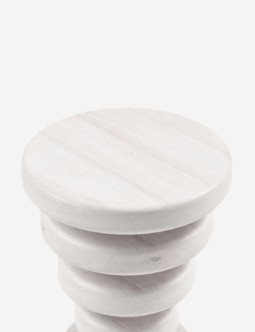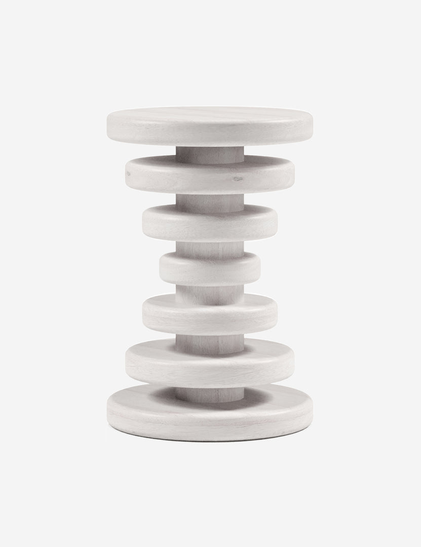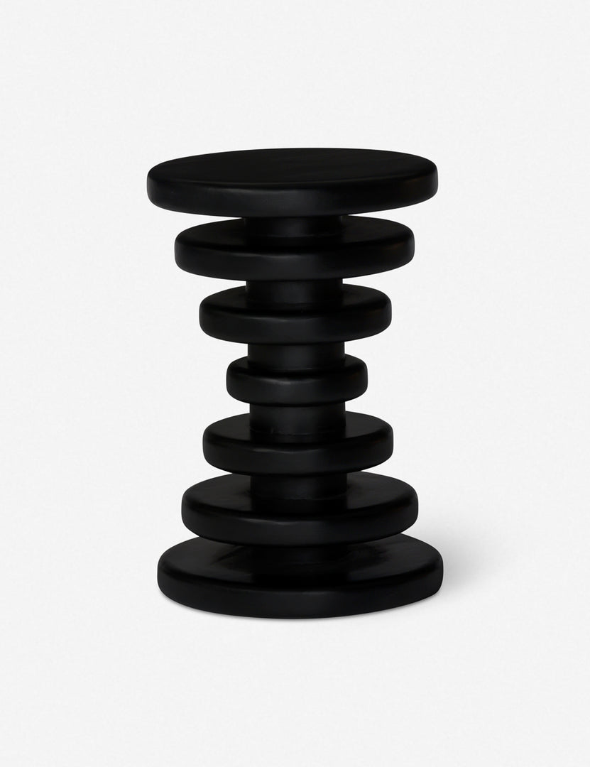 Turned from a solid block of hardwood, this stacked disc side table casts a strikingly modern silhouette. Style this small end table next to your favorite chair to perch your drink or book on or use it as a pedestal for a houseplant or vase.
