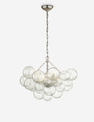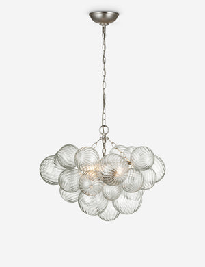 Oristano creates a brilliant statement overhead with a cluster of artisanal glass orbs. The chandelier design sets a stunning focal point over a dining table, living area, or entryway. We love this chandelier for its luminous, sculptural shape and bright pour of light.